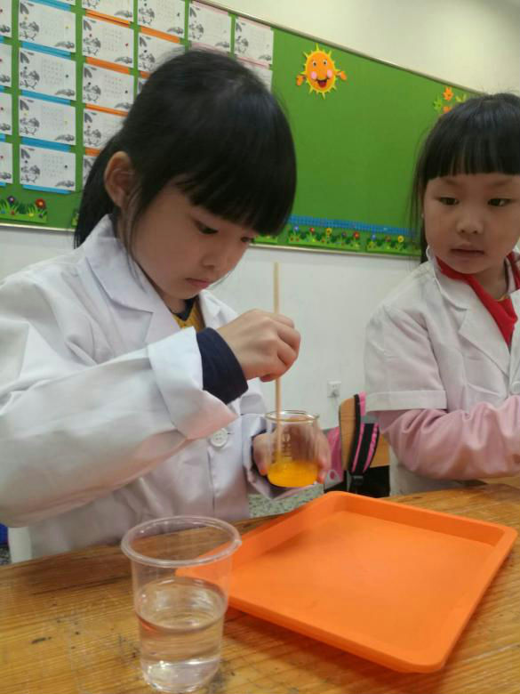 实验环节终于开始,同学们认真地搅拌、再搅拌~,到底会有什么巫师施展魔法呢?
