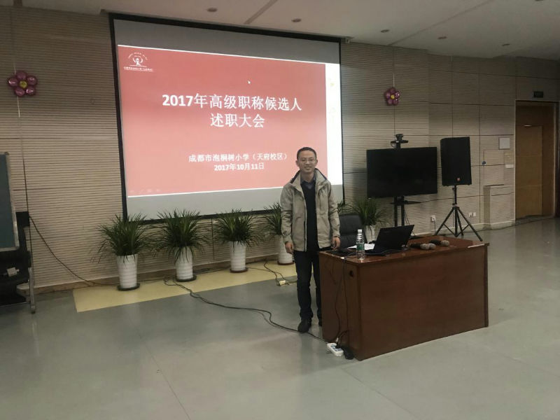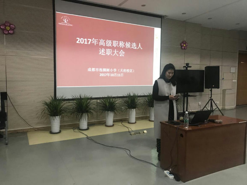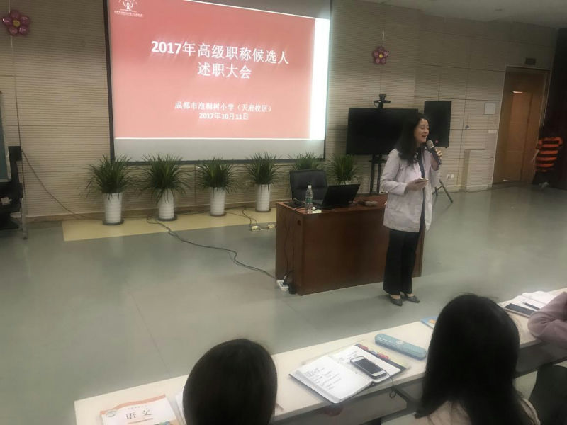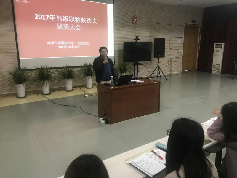 2017年10月11日,我校全体教师在二楼多功能厅召开高级职称候选人述职大会。会上,申报正高、中高的老师进行了述职。全体教师就他们的述职情况进行了民主测评。本次述职大会只是竞聘中高、正高职称的环节之一,后续将会对他们的教科研、论文、荣誉等情况进行综合评定,最终推选出1名正高、1名中高。