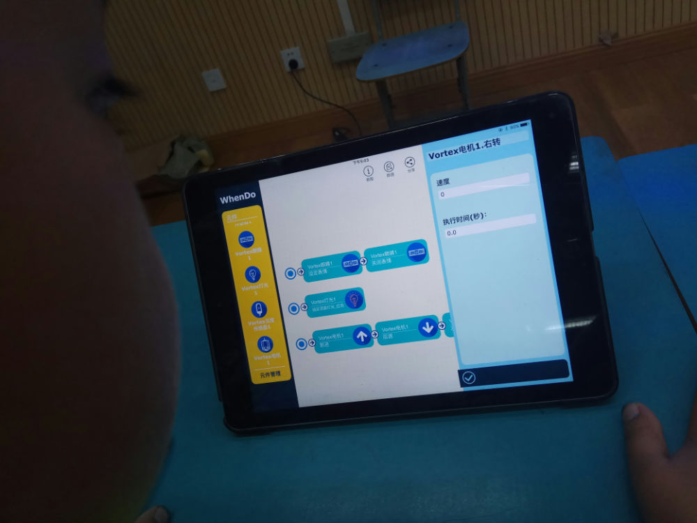 课堂一开始,杨老师首先向大家介绍了这个长得像白馒头一样的机器人朋友,然后教会了大家唤醒机器人的方法。泡泡们惊喜地发现,自己的馒头机器人睁开了“眼睛”,头顶还闪烁着五颜六色的光芒。接着,在杨老师的帮助下,泡泡们进行了更多勇敢的尝试。有的泡泡成功地让“馒头”“唱”起了歌,有的让它转起了圈,还有的让它横冲直撞,满教室乱窜;甚至还有小泡泡找到了感应部分,让“馒头”能够遇障返回,真是一个个具有探索精神的泡泡娃。