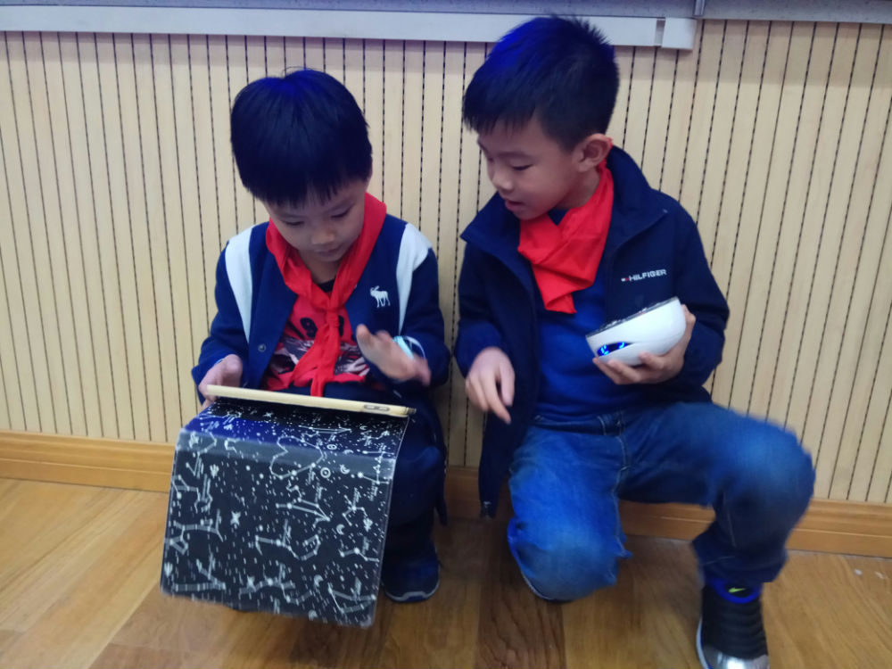 泡泡们完全沉浸进了探索的世界里,以至于我们看到教室里到处是席地而坐,讨论热烈的娃,甚至还有泡泡趴在地上,追着自己的“馒头”机器人移动。幸好咱们有一个干净整洁的教室环境,不然洗衣服的泡妈们就该烦恼啦!