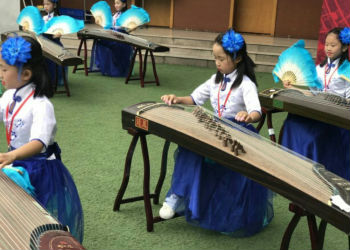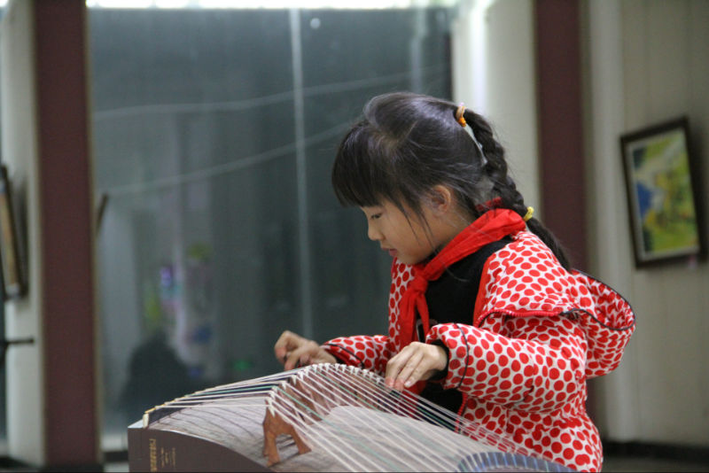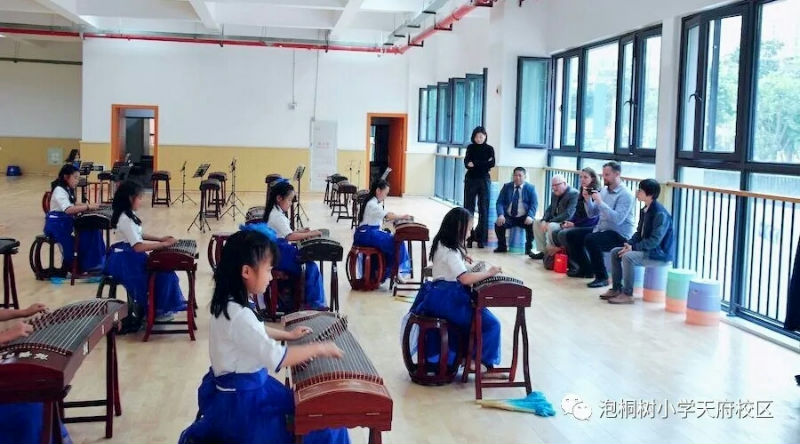 2017年10月25日下午,美国加利福尼亚州Dr.winston dennis博士携美国三所学校校长一行6人到我校交流访问。幽兰之音古筝社代表我校文化特色社团进行了特色课的展示,执教老师何国英。在这节课中,随行嘉宾欣赏了中国民族乐器——古筝表演。幽兰之音古筝表演社的10个孩子,首先和嘉宾玩了一个猜名字的游戏,用古筝演奏一首中国儿歌《你的名字叫什么》,名字就藏在拍击琴头的节奏中,我叫“小古筝”,我叫“小古筝”,嘉宾为拍击琴头的演奏方式感到特别新奇;接着,孩子们演奏了美国儿歌《铃儿响叮当》,能在异国听到外国小朋友用她(他)们的传统乐器演奏本国的儿歌,嘉宾们觉得意外惊喜,情不自禁地手舞足蹈起来;最后,我们表演了保留节目《青花瓷》,孩子们古朴典雅的演奏和美妙的扇子舞相结合,让嘉宾们眼前一亮,他们竖起大拇指惊呼:“verygood!中国古筝文化了不起!”中国文化博大精深,他们表达了深深的敬意!