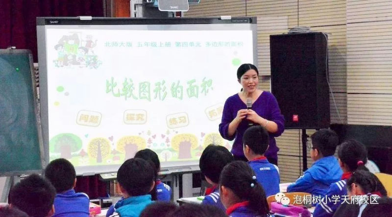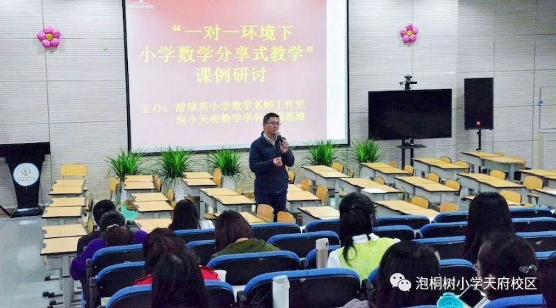本次活动的主题是“一对一环境下小学数学分享式教学”课例研讨。游琼英名师工作室老师、泡小天府数学学科实训基地成员学校的数学老师参与了活动。