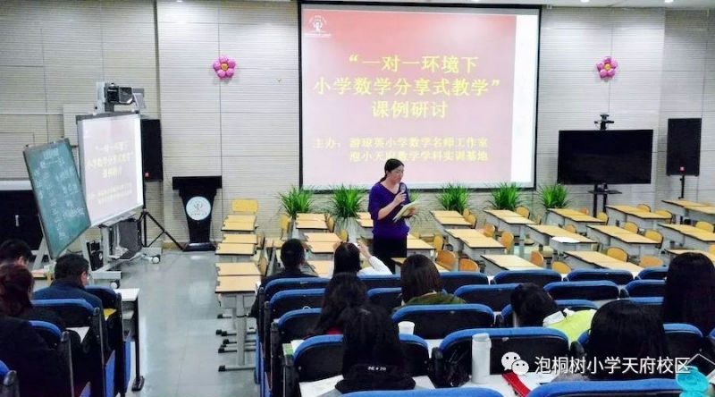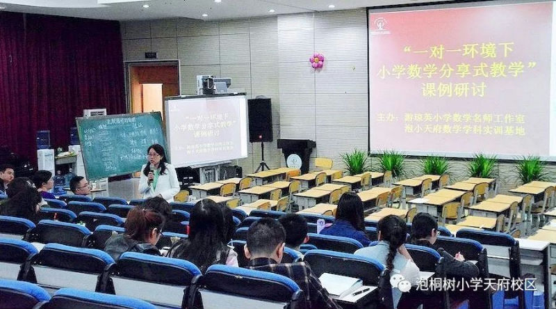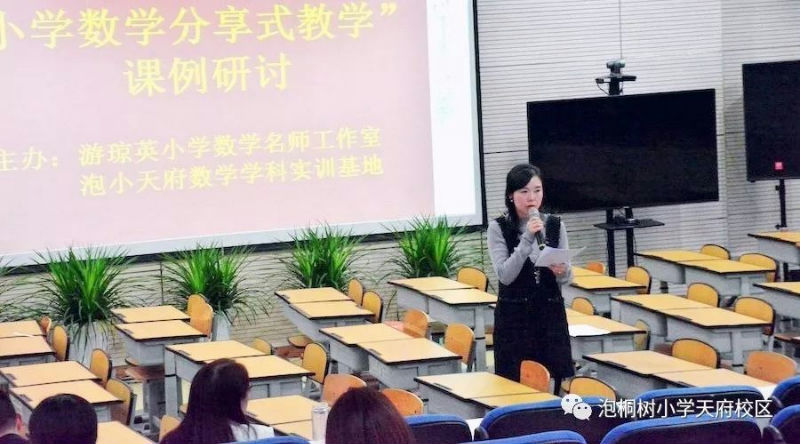2017年10月18日,高新区游琼英工作室暨数学学科实训基地研修活动在成都市泡桐树小学(天府校区)阶梯教室进行。