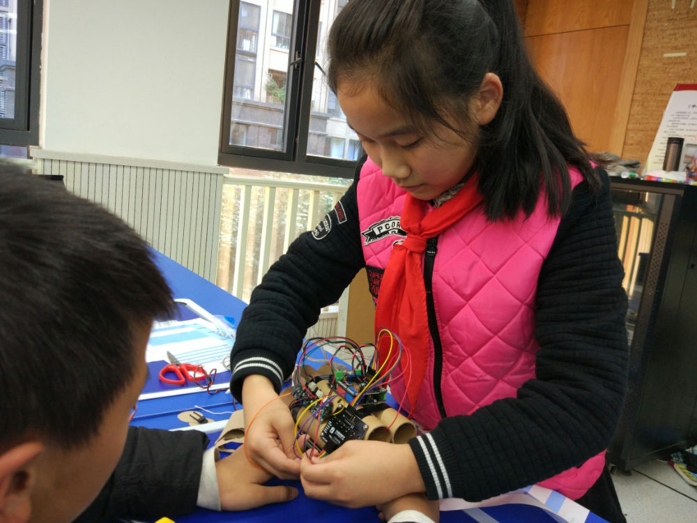 一个虚拟的小故事,完全吸引住了孩子们的注意力,点燃了孩子们的热情。陈洪娟老师主讲的创客课程“拆弹专家”正式拉开序幕。