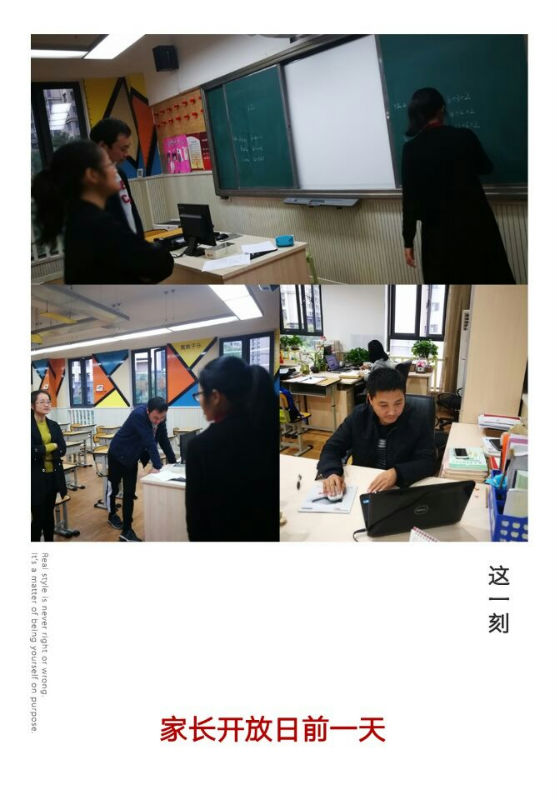 开放日的前一天,老师们在办公室,教室一如往常的备课,研讨。