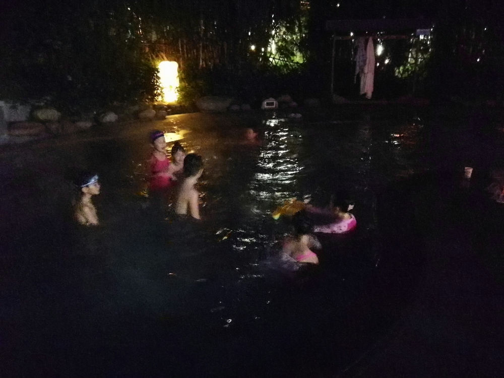 最后一项活动是泡温泉,夜色已晚,孩子玩耍的兴致却有增无减,在户外热气腾腾的温泉池里嬉笑打闹,欢声笑语一浪接着一浪。初冬微寒的夜空下,此次活动圆满结束,孩子们欢乐的童年里又定格下一幅美好的画面,新的一天,又将以更饱满的热情投入到新的学习中去。