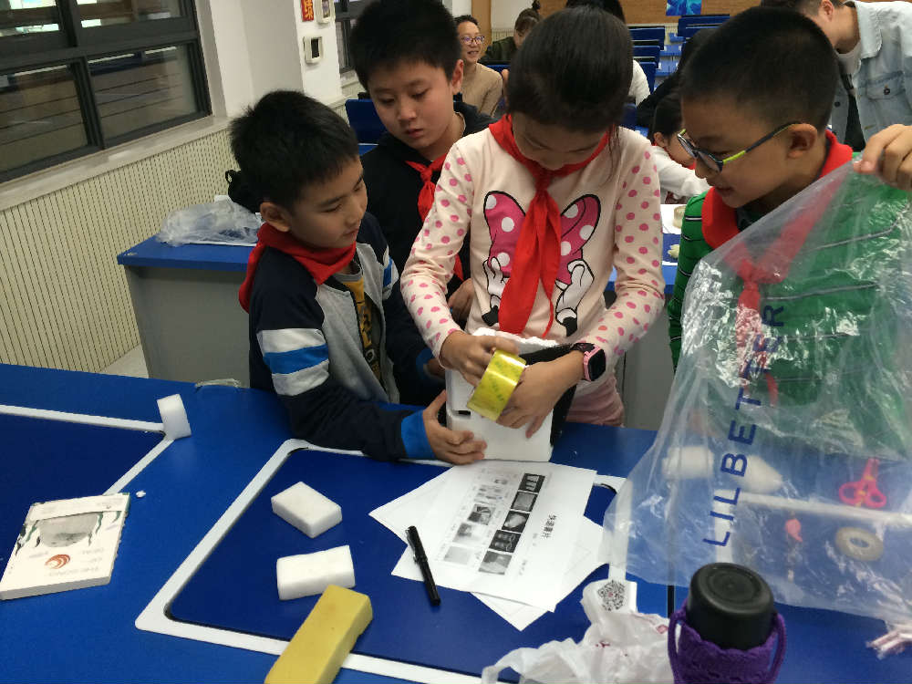 孩子们热火朝天地动起了手来,发挥了团队的智慧,制作了自己小组的快递包装,精心保护好了自己的薯片。有的包装外观精美,有的看起来结实耐用,接下来就进入了让人略有紧张的挑战环节,各个小组基本都通过了前三轮的挑战,证明了自己的快递包的坚固耐用。而在拆卸挑战这个环节中,包装简单的小组就率先完成了拆卸,得到了高分。邓老师最后根据薯片的破损程度为各小组打出了高到低的分数,汇总各个环节的分数后,将一开始设置的“最美观快递包装奖”、“最实惠快递包装奖”和“最佳快递包装奖”三大奖项奖励给了对应的小组,鼓励同学们勤于思考、善于动手,多解决自己生活中的小问题。