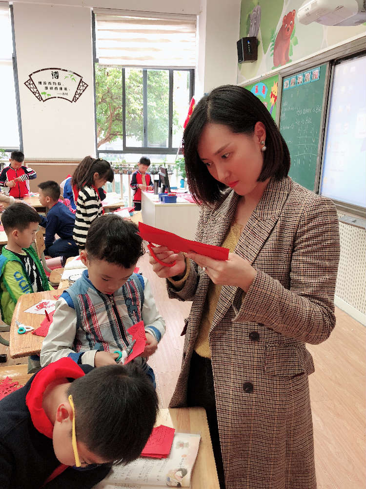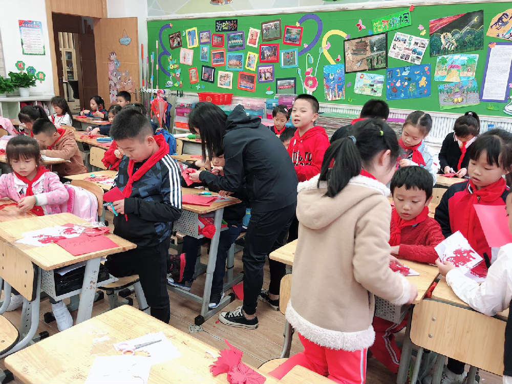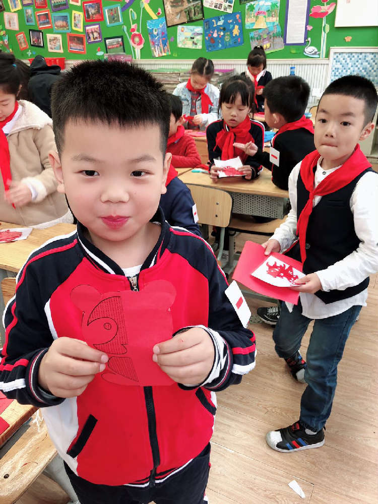 课堂上,陈泊恒妈妈介绍了剪纸的故事、剪纸的起源和剪纸的美丽传说。同学们欣赏了一张一张惟妙惟肖的剪纸图片,纷纷赞叹剪纸太精美了。