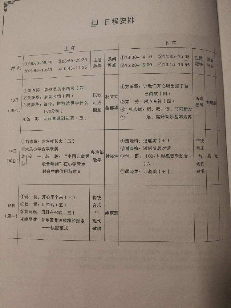 继往开来,既正视传统的文化表现形式,又与时代脉搏同步,将民歌教学与新时代教学进行融合,实现实践创新。前沿理念引领浙江省杭州市拱墅区中小学音乐教研员,特级教师姚丽雅担纲。经典课堂示范江苏省常州市博爱教育集团副校长,特级教师蒋忱执教《开心里个来》(三年级),浙江省杭州市拱墅区中小学音乐教研员,特级教师姚丽雅,执教《田野在召唤》(五年级),特别感动,姚老师,作为专家级的一线教师的导师,能亲自示范,带领老师们做“培养学生核心素养新常态课堂”的课题,做到让音乐属于每一个人。