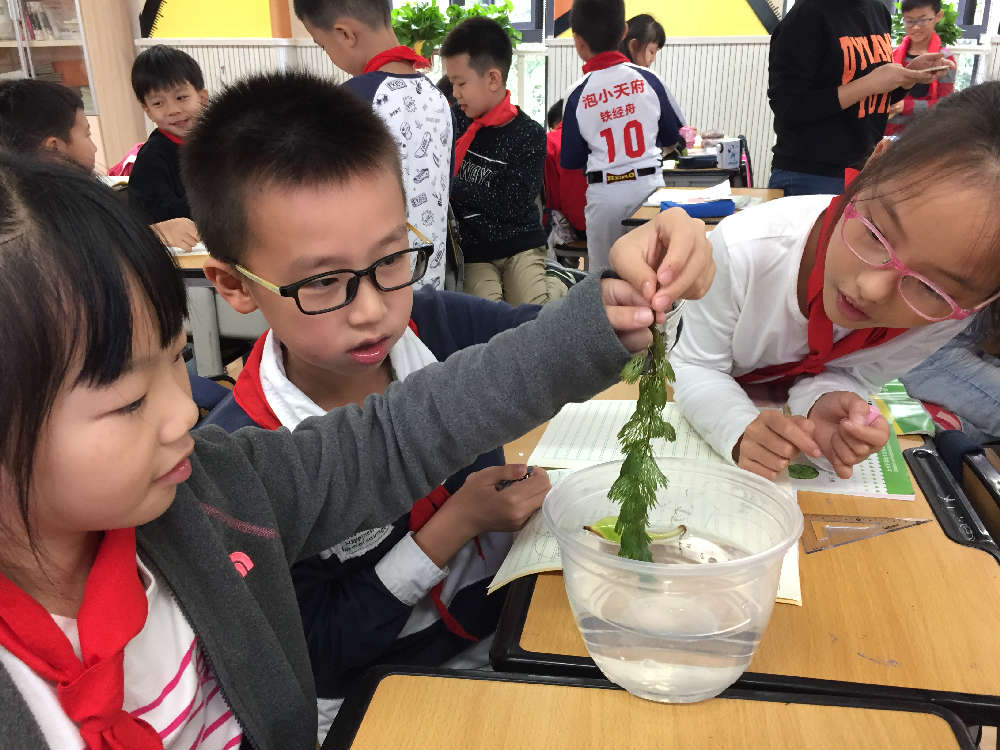 9月27日,王俊璐老师的诊断课在3年级12班顺利进行,题目是《水生植物》,这是一堂考验学生动手观察能力的实验课。王老师从认识各种水生植物进行导入,激起了孩子们的好奇心,随后选取了有代表性的水葫芦和重要金鱼藻供孩子们观察,把课堂交给了孩子,激发了学生学习的主体性,并在过程中进行指导,顺利引出了水葫芦为什么会浮在水面上这个重要问题。既让同学们在学习了陆生植物后进一步了解了植物的多样性,又再次巩固了植物也是生命这一概念。
