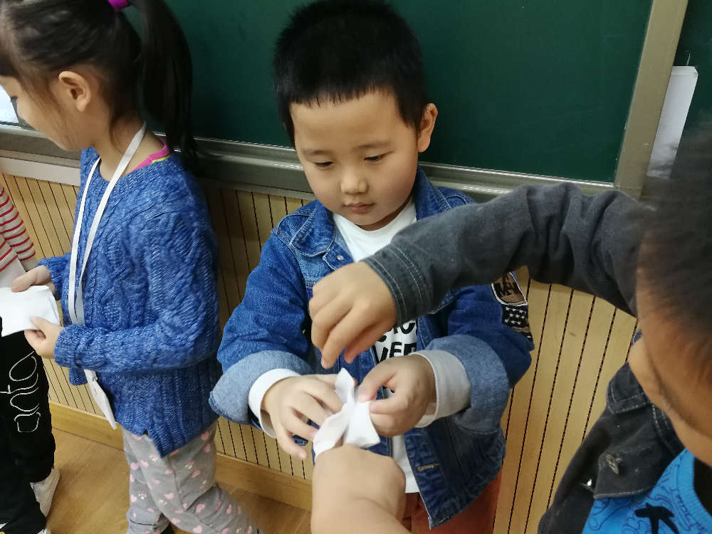 对于野外受伤的自救,小泡泡们还第一次试验了自己用纱布包扎伤口,一个个有模有样的,包扎的非常好,各位小泡泡都对自己的成果非常满意,露出了自豪的笑脸。