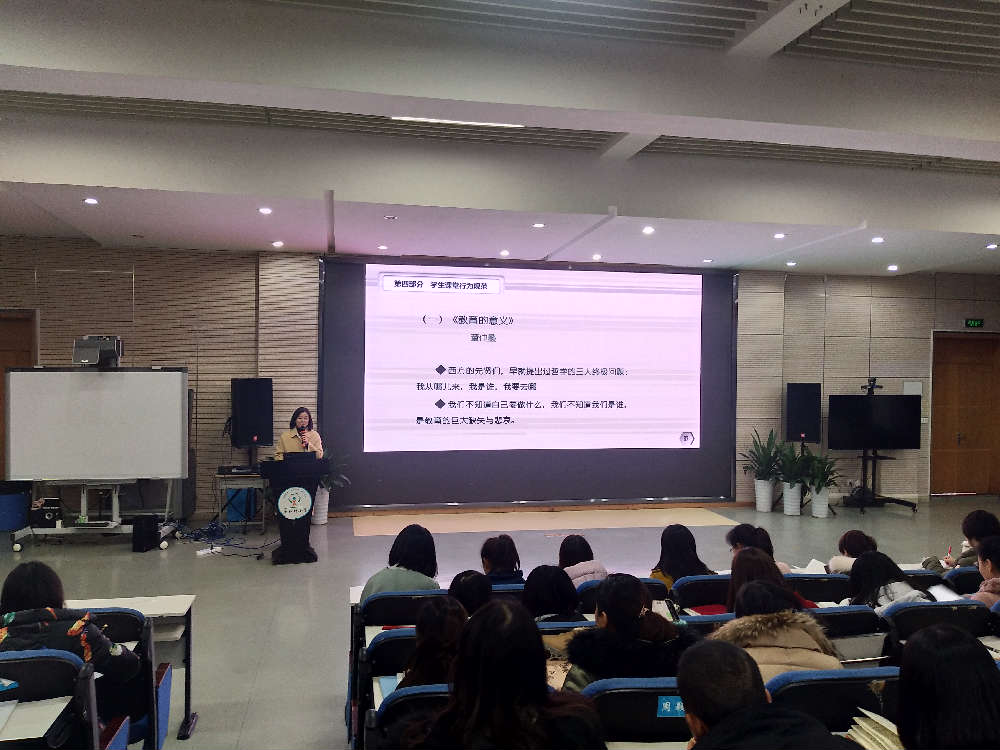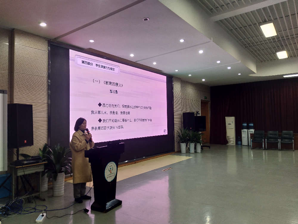12月3日,学生发展中心曹娟主任继续给老师们讲解德育工作的重要性。这一次讲解的内容是《学生课堂行为规范》。曹主任从教育的意义,认知和敬畏规则和学生课堂行为规范三个方面来讲解。