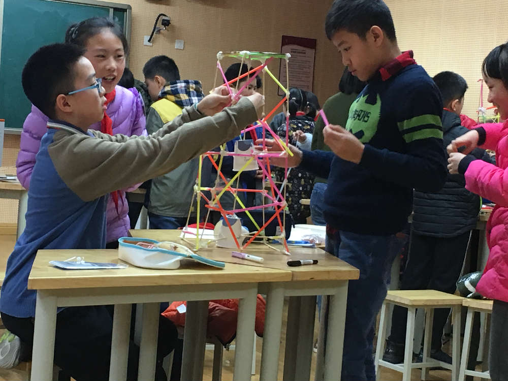 教师教学水平提高,教师专业素质提升是教师专业发展的必经之路,2018年12月6日上午教研时间,三位科学老师带来展示课,文彦佳老师精心准备,带来神奇的纸,整堂课思路清晰,环环紧扣,从普通纸和瓦楞纸侧面形状的不同引入,到实验验证。按一按,放一放,摸一摸三个实验,总结瓦楞纸具有抗压、抗弯曲和隔热的特性。马程翔老师和三年级7班的小朋友一起探索水和食用油的比较。探索出水和油相比,在颜色、气味、透明度、粘度、液滴的形状、重量等方面有差异,但他们都会流动、没有固定形状。向三军老师引导六年级的小泡泡共同设计防震建筑,学生对地震为何产生,如何有效减少地震对建筑的损害,小组合作,充分发挥自主探究能力,在有限的时间内,有限的材料下,制作出了稳固的防震建筑,是一节学生喜爱的STEAM工程设计课。