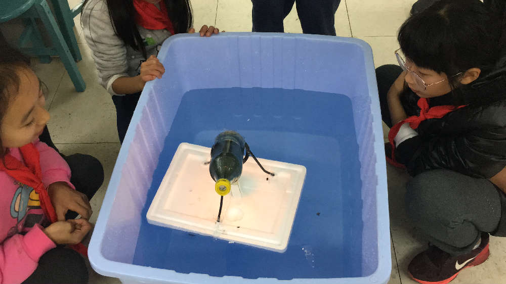在学习中,我们了解船舶的发展经历三个时代:舟筏时代-帆船时代-轮船时代。船只运动所需要的的动力由人力、风力发展到蒸汽机、柴油机、电力等多种。首先小泡泡们以小组为单位,设计自己的小船图纸,确定自己的小船可以依靠什么作为动力,进而选择小组所需材料,根据方案进行设计,测试再改进。最终有一半的同学完成了任务,其中有一个小组是在改进后才最终成功的。创客活动,steam教育重在学生的参与体验,思考与动手能力的结合。未来,我们会有更多的新能源作为动力,小泡泡们,你有兴趣成为一名船舶工程师吗?
