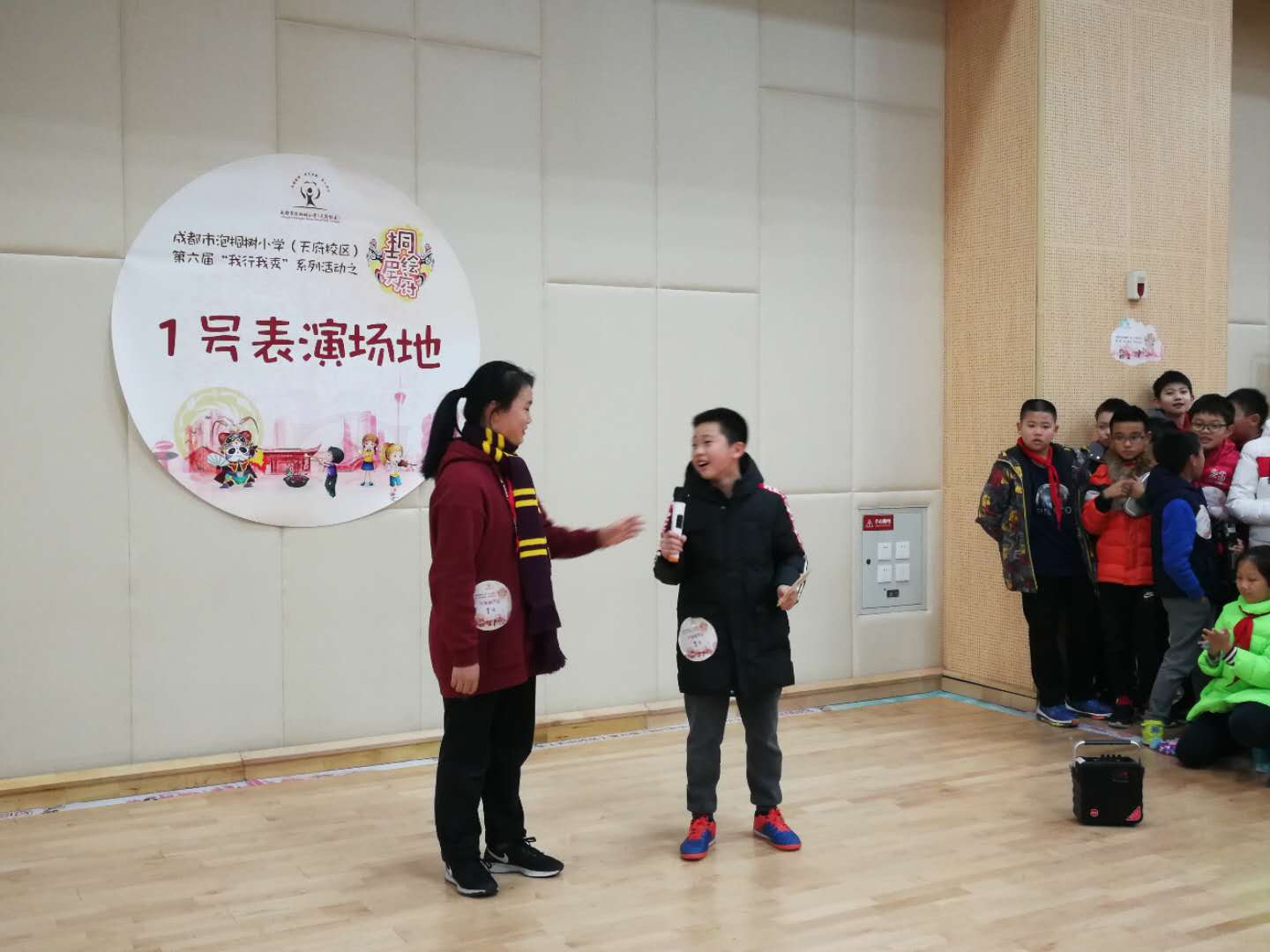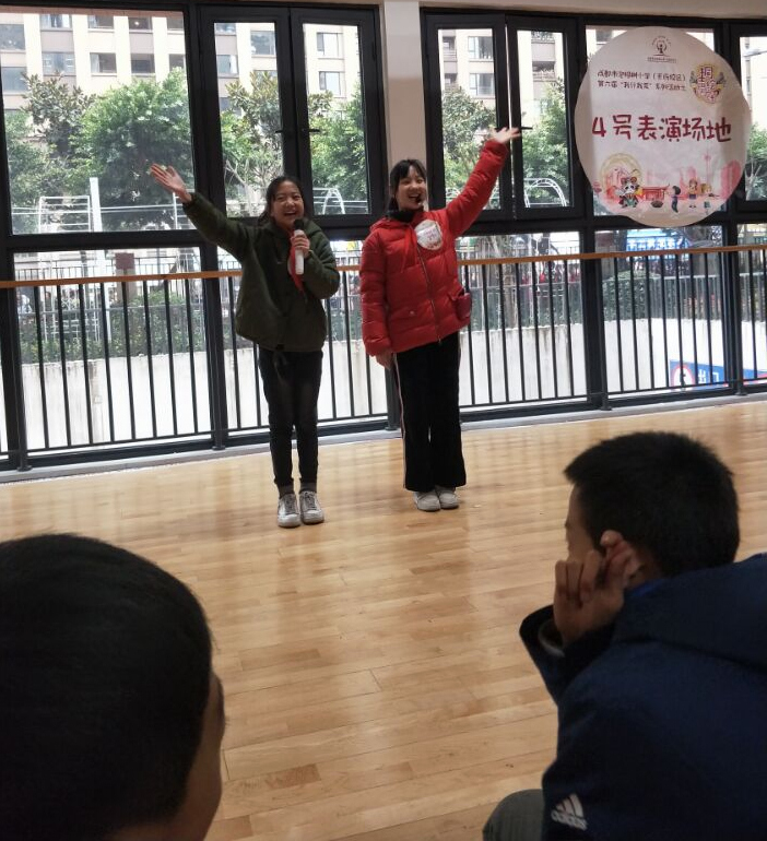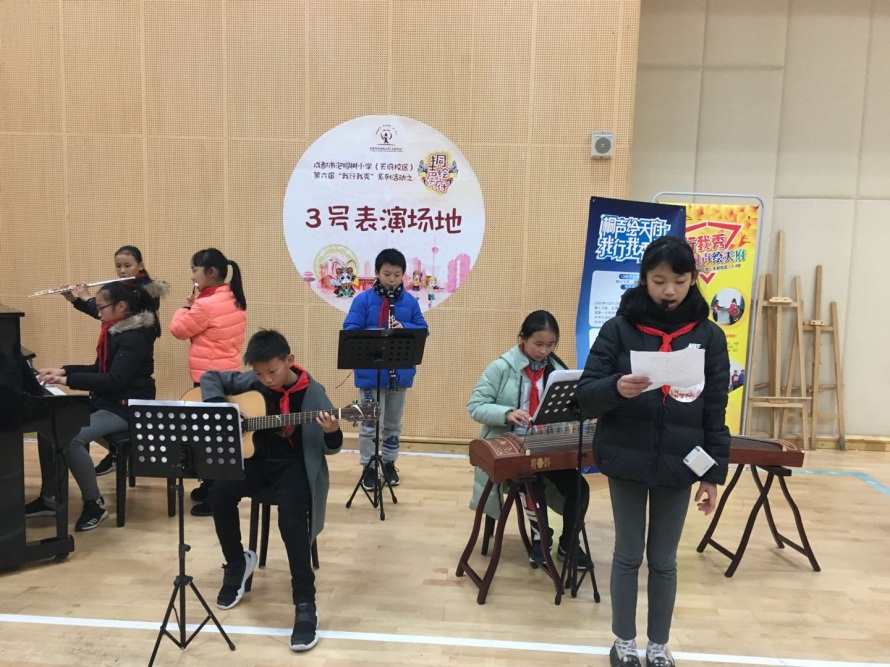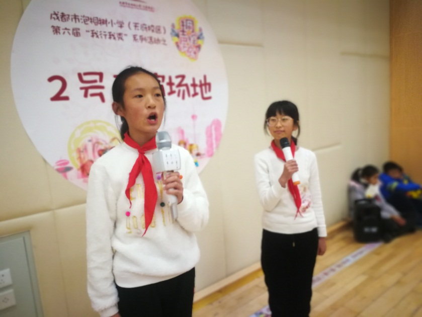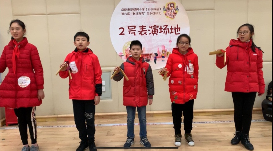 “传承巴蜀文明,弘扬天府文化”,12月12日下午2:30,泡桐树小学(天府校区)第六届“我行我秀”系列活动之“桐声绘天府”——六年级天府科技文化表演会场正式拉开帷幕。