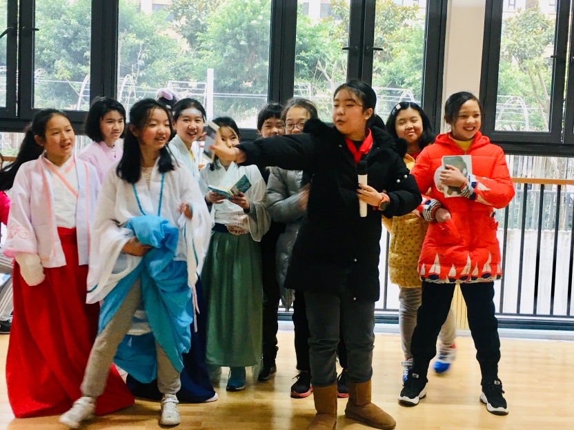 走,再去1班听听令人捧腹的相声,去3班品品拥有强大科技力量的舞台剧,去7班看看三位来应聘的高智商机器人……1个小时,4个场地,27个节目,短短的时间,小小的场地,少少的表演,承载的却是泡天六年级438名同学共同的天府科技梦。