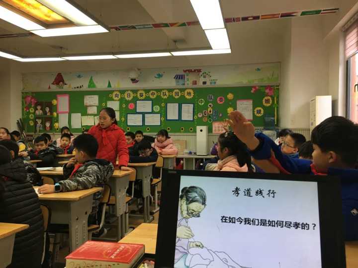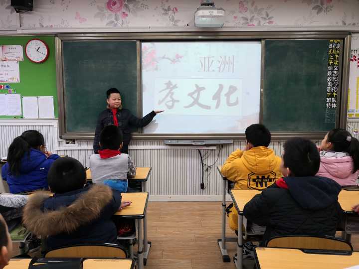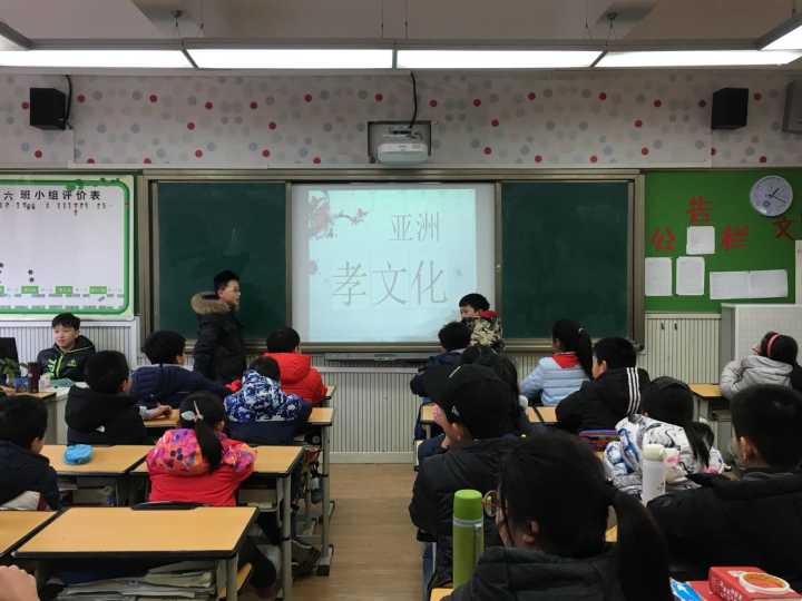 结合着学校本学期“致力于培养具有国际视野的现代化中国公民”的德育目标,五年级的“亚洲文化”德育系列课程开展得有声有色。伴随2018年的匆匆行走的脚步,12月28日的班队课上,泡小天府五年级的孩子们正在进行《孝——亚洲文化》的主题班会。