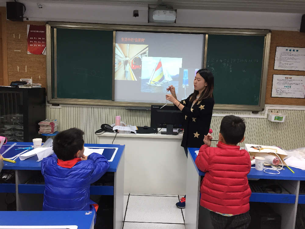 科创组的刘老师用几张图片吸引住孩子们的注意力,激发孩子们的兴趣;接着慢慢引导学生利用自己带来的工具开始制作“大炮”且成功让炮弹从大炮飞出来;