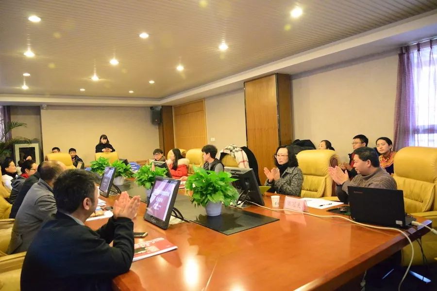 在国际会议室,专家组一行认真听取了陈冠夫副校长对泡天建校以来取得的艺术教育成果以及艺术教育工作汇报。