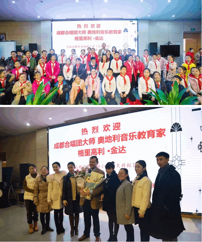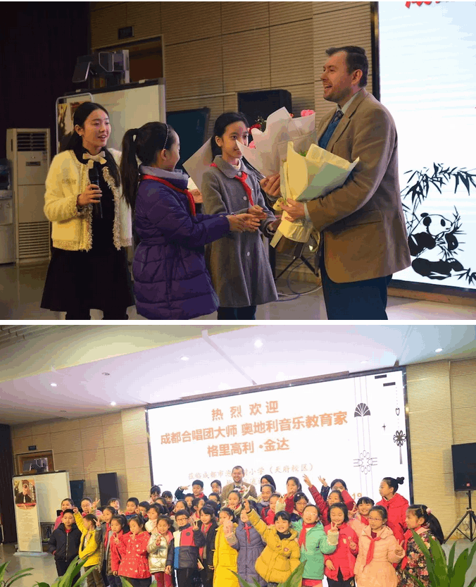 12月19日,来自成都童声合唱团的导师,奥地利的波兰裔钢琴家、音乐教育家格里高利.金达老师走进泡小天府,让泡天的孩子们近距离感受了世界顶级音乐家带来艺术魅力。