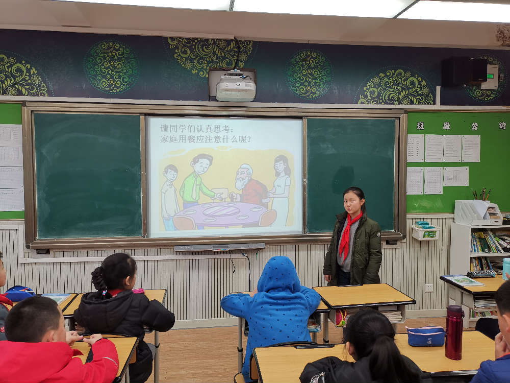 一粥一饭当思来之不易,半丝半缕恒念物力维艰。建立了常规行为公约后,五年级针对孩子行为规范薄弱点进行狠抓,第二周主题班会各班以《学习就餐礼仪,做受人尊重的人》为题。循循善诱中,孩子们强化了就餐礼仪,编写了就餐儿歌:按时就餐,不乱跑;安静有序,不喧哗;自觉排队,不拥挤;珍惜粮食,不浪费;轻拿轻放,不乱扔。最后孩子们齐读了文明就餐公约:排队进入,整齐有序;餐前洗手,不挤不急;耐心领餐,有序有礼;轻放餐盘,坐进座位;坐姿端正,脚下放平;集体就餐,安静专心;细嚼慢咽,小口进食;喷嚏咳嗽,手捂住嘴;咀嚼喝汤,不发声音。相信这些耳熟能详的儿歌、公约将在小泡泡就餐中逐步践行,做受人尊重的人。