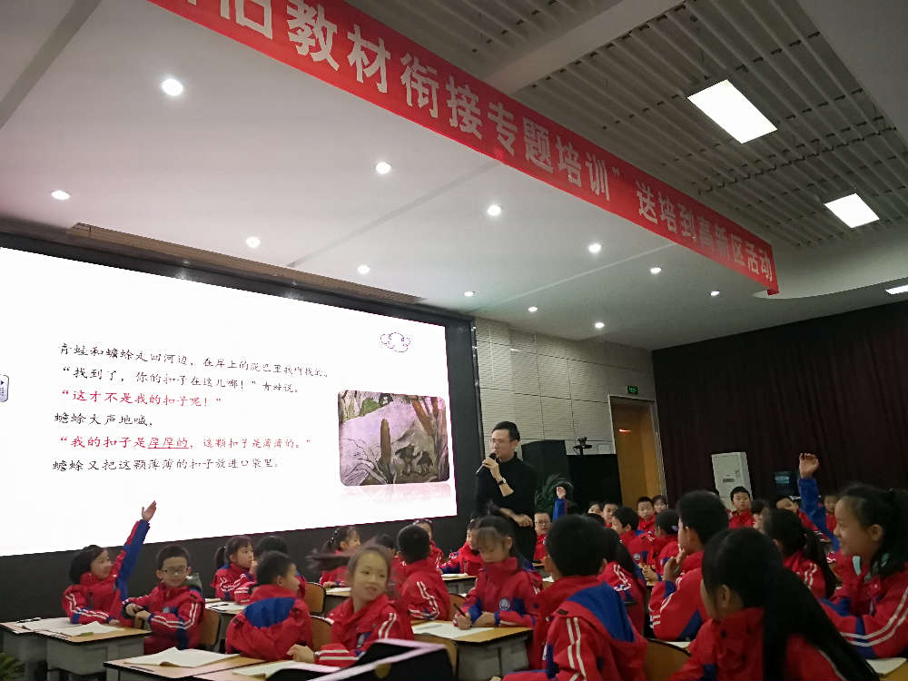 2019年3月15日,成都市教科院“新旧教材衔接专题培训”送培到高新区活动在成都市泡桐树小学(天府校区)举行。莅临此次活动的有远川教育创始人张建老师、高新区教育发展中心小学室负责人瞿风老师、高新区语文教研员杨丽老师、成都市泡桐树小学(天府校区)宋茜校长,以及高新区各小学语文教研备课组长、骨干教师、2018年进入高新区的新教师。