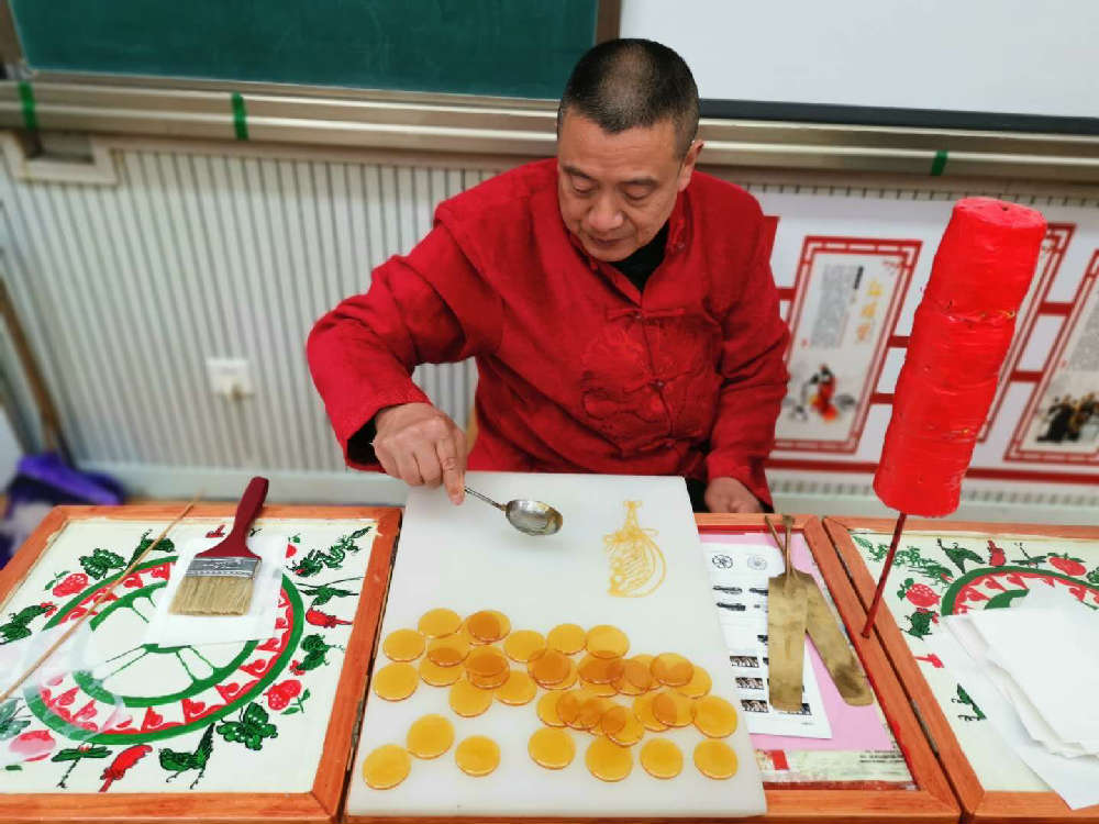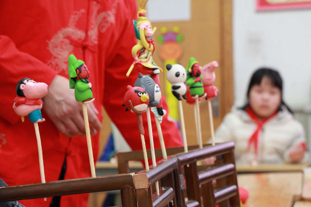 寻文化之味——非遗体验区。在这儿,同学们可以在糖画区感受画糖人儿的魅力;在面塑区,跟着面塑老师学习捏制可爱的小鸟、小狗等;在棕编区,可以用粽叶编制蜈蚣、小猪等;也可以在活字印刷区探索古代活字印刷术的奥秘……