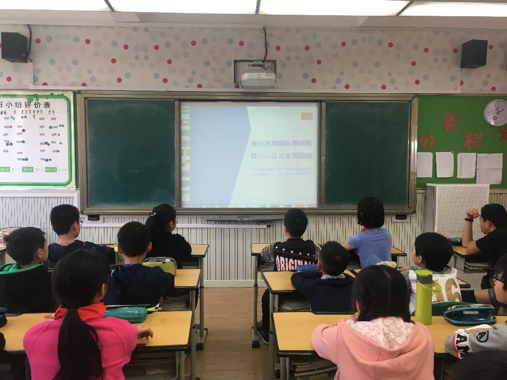 为致力于培养具有国际视野的现代化中国公民,结合本校的办学理念“为每个孩子最大可能的发展负责”,开设国际理解教育主题活动,一月一主题,一月一活动。成都市泡桐树小学(天府校区)五年级于3月29日下午围绕“亚洲国旗知识”开展了主题班会活动。