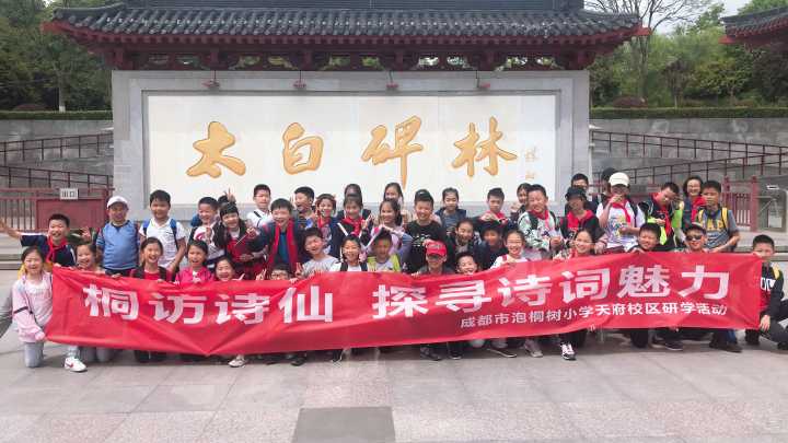 “观天下之大方知一身之小,得万物之奥皆因求思之深”。4月11日,成都市泡桐树小学(天府校区)五年级的全体师生,怀揣着对古诗词的热爱、对诗人李白敬仰,走出校门,学研相长,前往绵阳江油市青莲镇寻访诗人足迹,感受诗仙遗风。