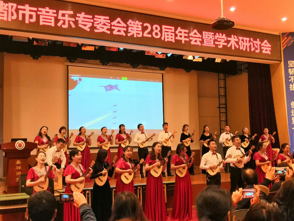 金牛区教师阳光艺术团“新型课堂乐器”展演--中华小四弦 ,这个环节的展示为本次活动的开幕,营造了良好的氛围,体现了音乐教师年会的魅力、欢乐。