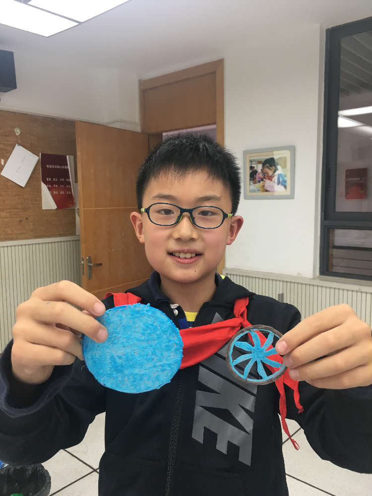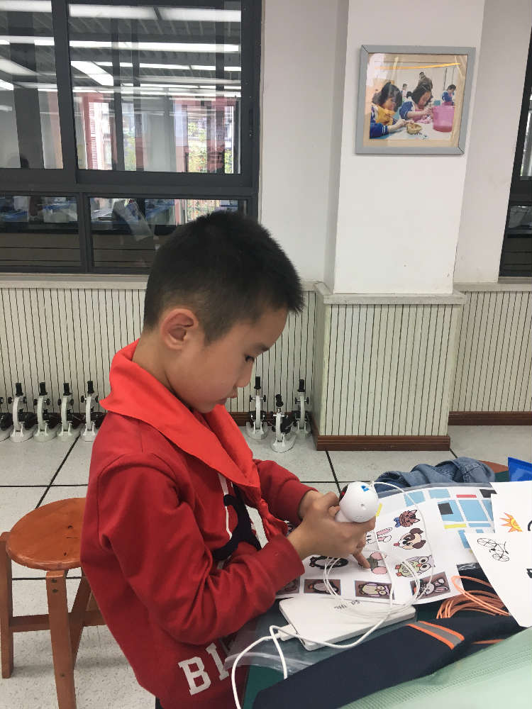 王老师首先为大家介绍了今天这位神秘的朋友——3D打印笔,它拥有圆滚滚的脑袋,胖胖的肚子,吃进去的彩色物料变得软软的,易于塑形。于是小朋友们和这位朋友一起创造了许多绚烂多彩的图案。