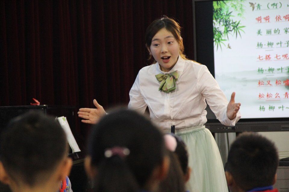 江樾老师的《杨柳青》把孩子们带到美丽的江南风光里面,孩子在学唱歌曲中体会到了扬州人民劳动的喜悦之情。