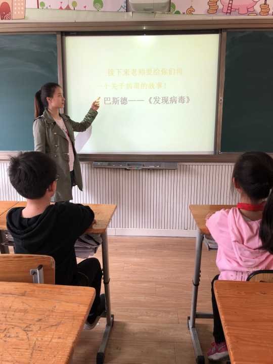 老师们以讲故事、举例子、联系生活等方给孩子们介绍病毒和病毒主要特征。病毒是自然界中最微小的生物,只有在电子显微镜下看到。虽然它很小,但和我们的生活密切相关。人们的很多疾病都是病毒造成的,比如:天花、病毒性肝炎、狂犬病、流感,更有令人闻之色变的艾滋病毒。而很多疾病是不注重个人卫生导致的。了病毒分布很广泛,只要有生命的地方都要有病毒。而很多病毒喜欢跑到不爱干净、身体素质差的人身上居住,比如不经常运动的同学,一般来说,身体的抵抗力要差一些,比经常运动的同学更容易病毒性感冒。这也告诉我们要多爱干净,多加强锻炼,避免被病毒侵害身体。