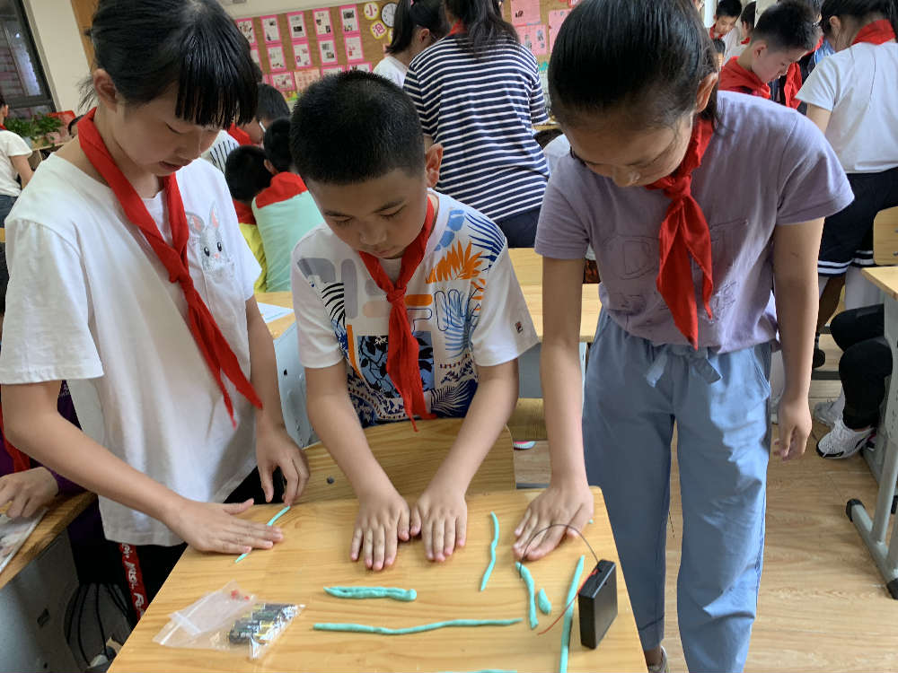 灯泡是如何发亮的?导电性是什么?这些的问题肯定难不到六年级的小泡泡,那面团能导电吗?带着这样的问题孩子们开始了本期STEAM课程学习。该课程由数学、科学、信息技术教师共同授课,4月30日全部课程结束。学生通过视频、阅读、实践、小组分享交流等方式自主探索电路的相关知识。主要经历“提出问题—猜想—计划—制作—改进”几个过程,培养学生合作能力和综合解决问题的能力。