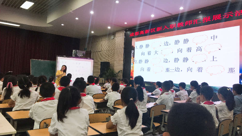 经过前期新教师说课比赛,遴选出三位新教师参加展示课活动。此次活动在我校多功能厅举行,高新区教育发展中心李建萍主任、万国禹老师、杨丽老师和刘林老师,以及语文教研员瞿风老师、音乐教研员万里燕老师和数学教研员王晓明老师参与了此次活动。参与此次活动的还有新教师和他们的指导老师。