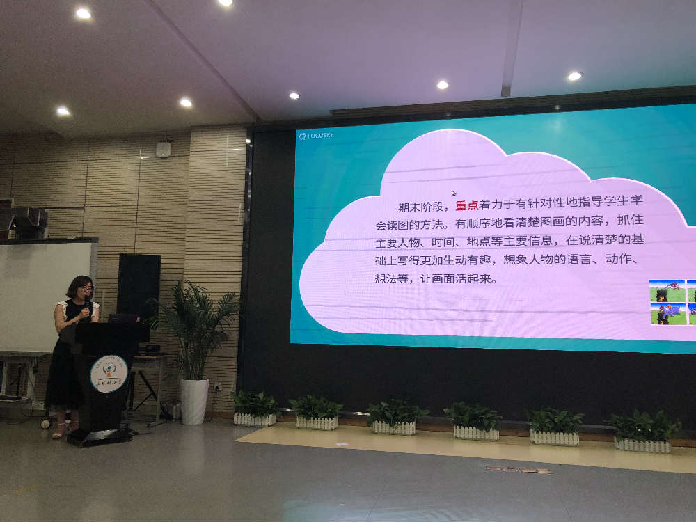 杨小燕老师分享了低段写话复习指导的方法。低段写话的复习重点应着力于有针对性地指导学生学会读图的方法,关注泡泡语,写好天气和景物,积累句式,用好四把金钥匙。
