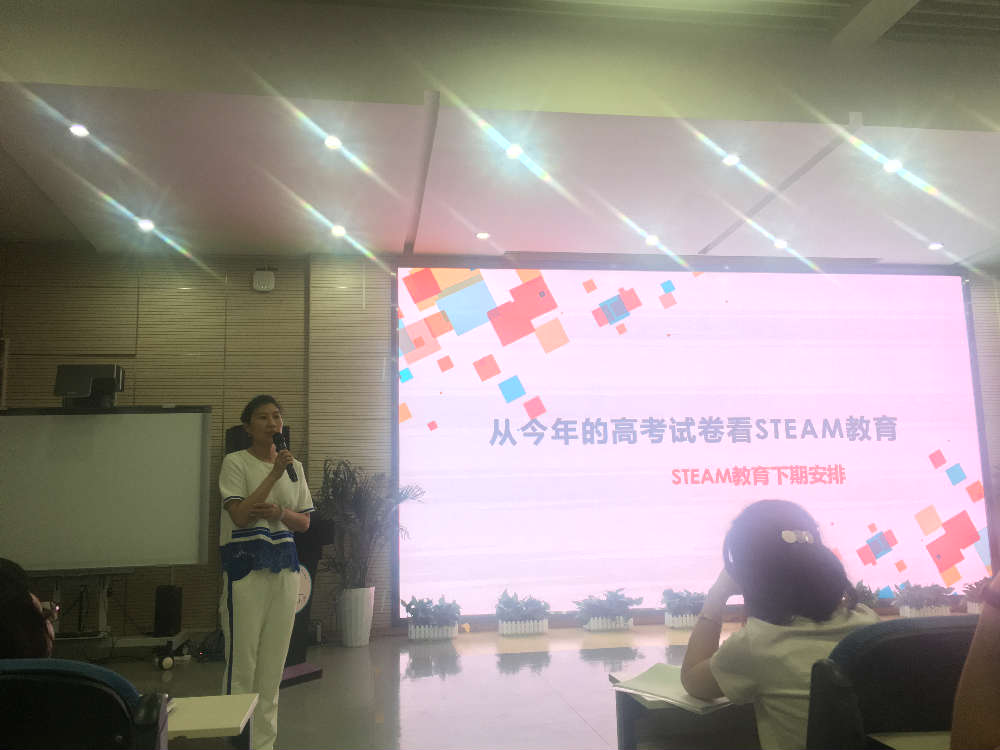 紧接着杨眉老师对本学期STEAM课程开展的情况做了一个简单总结,陈洪娟主任对下期的STEAM教育工作作了安排,首先她结合今年刚过去的高考,尤其是数学一科的内容,例如网传的断臂维纳斯身高等,做出了大方向的预测,她说,教育今后前进的大方向应当是综合性学习,这与我们的STEAM理念不谋而合,因此老师们也需要打破桎梏,接受新的教学理念,逐渐接受学科融合课程的产生,并积极的参与进去,紧跟时代的大潮流。