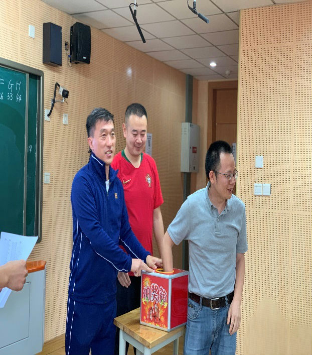 本届比赛以独立或联合的两种方式参赛。图为校学生家长发展中心曹娟主任和体育组范围老师(学校体育组老师刘珈齐,范围,周瑞三位老师既是组委会重要成员,也是本届赛事的裁判员)分别抽取一支申请队伍组成联队,抽取联队在摄像机和大家的监督下热烈进行,强强联合欢呼雀跃,弱强联合完美无暇。。。。。。最终完美组成八支联队,校家委会张立武副主席亲自写在黑板上,每一个联队的人也相互击掌认识鼓励,整个会场一片欢歌!