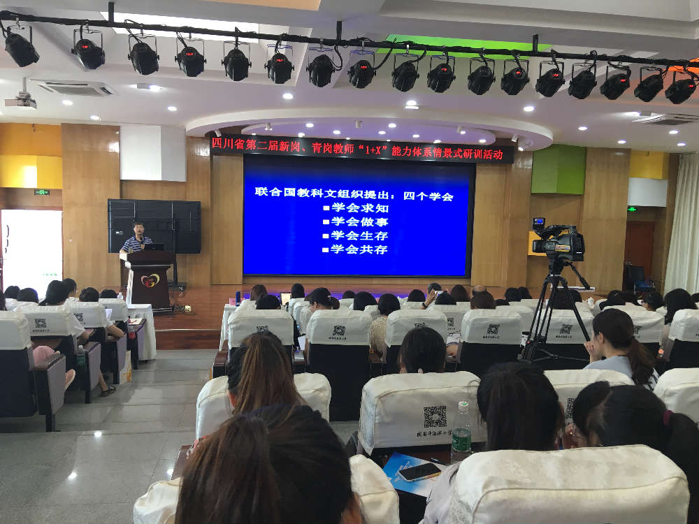 四川师范大学教师培训学院副院长曹正善老师首先带领200多名学员齐诵《师德歌》,以此拉开了研训活动的序幕。