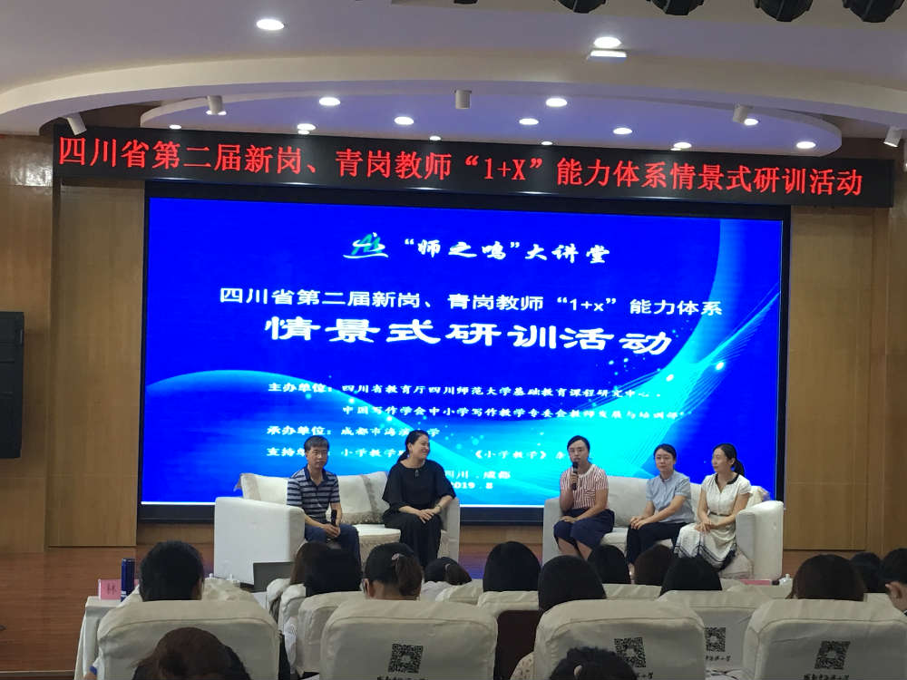 随后,罗良建老师与李利会、胡雪梅、林俐、门雨红四位专家一起和我们进行沙龙互动。我校教师甘慧文就“低年级学生如何进行合作学习?”进行了发问,得到了台上五位专家老师的详细解答。
