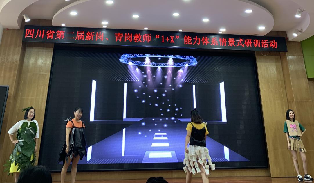 具体学习展开之前,就当前最热的垃圾分类问题进行了一场新颖别致的环保服装秀,引导在座的各位老师有意识地主动减少生活塑料袋的使用,身体力行爱护我们周围的环境。