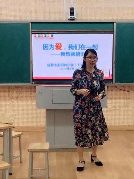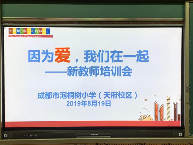 8月19日,沉寂了一个假期的泡天校园热闹了起来,因为,有一群热爱教育的教师们相聚在一起,在学校领导宋茜校长、欧小丽主任、廖敏主任、宁超群主任的陪同下,在新教学楼的录播室参加泡桐树小学(天府校区)的新教师培训。