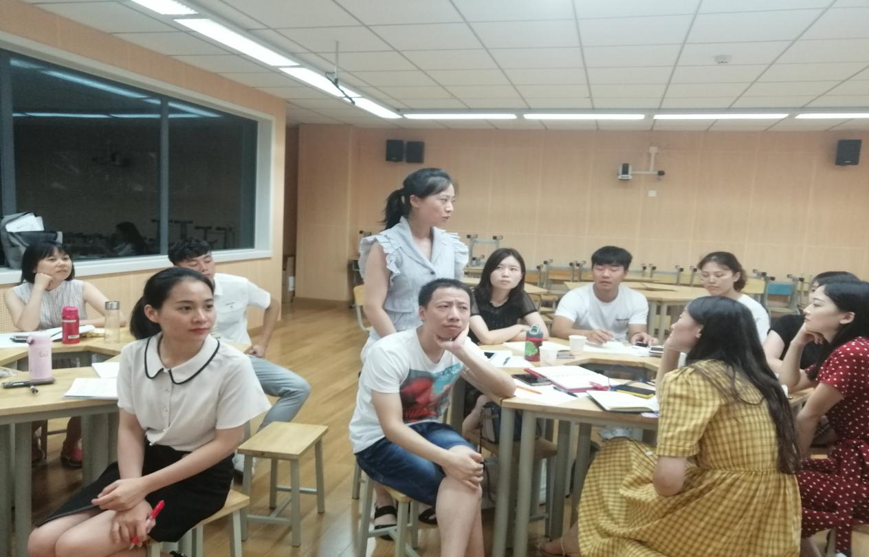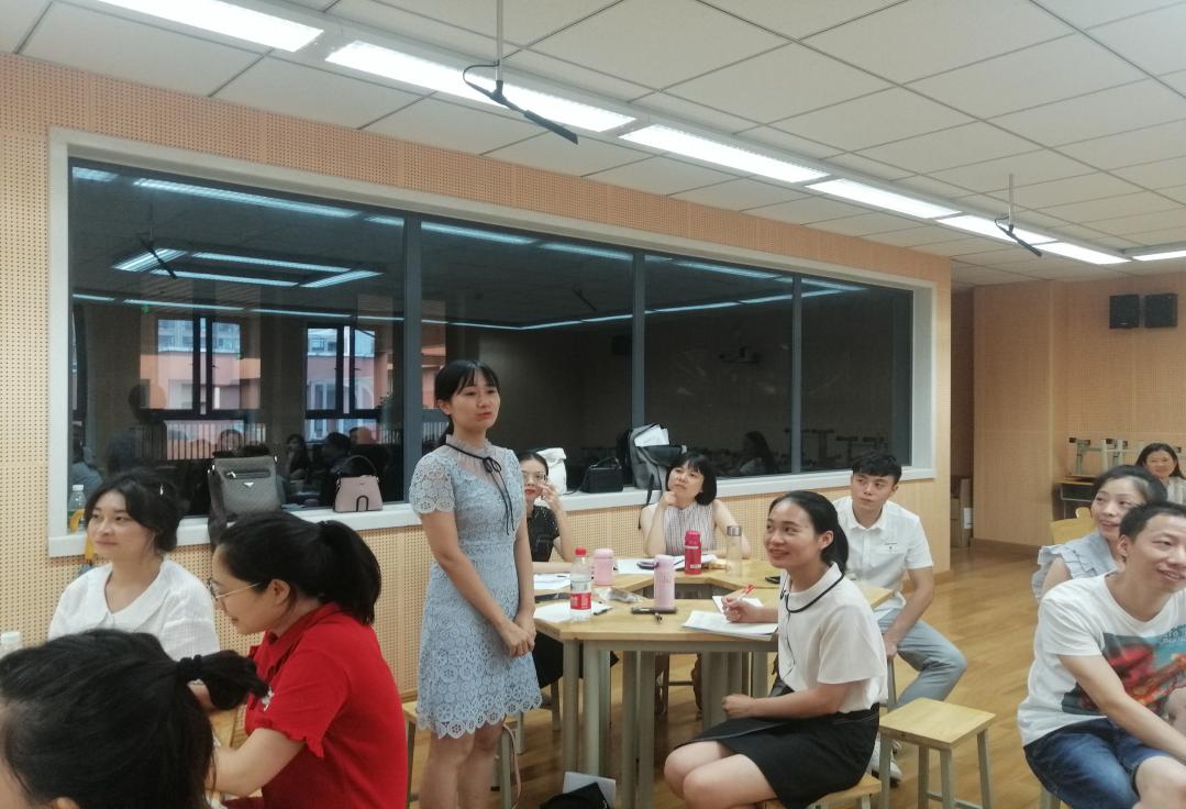 “一堂30分钟的课程,老师讲多长时间更合适?”“课堂结构要怎样安排才更合理?”“作业检查、作业批改中需要注意哪些方面的问题?”……讲座开始前,廖敏主任让新老师们说出了大家最关心的一些问题,并根据大家的提问,汇总了教学计划、备课、上课、作业批改、教研、辅导、教学反思等要点,再结合她多年的教学经验和研究成果,围绕“教学常规怎么做才能有利于教师和学生的发展”等主题,指导老师们进行分组讨论、交流, 并汇报交流成果,其他小组老师在学习别人交流成果的同时,还可以就感兴趣的内容提出自己的意见和建议。