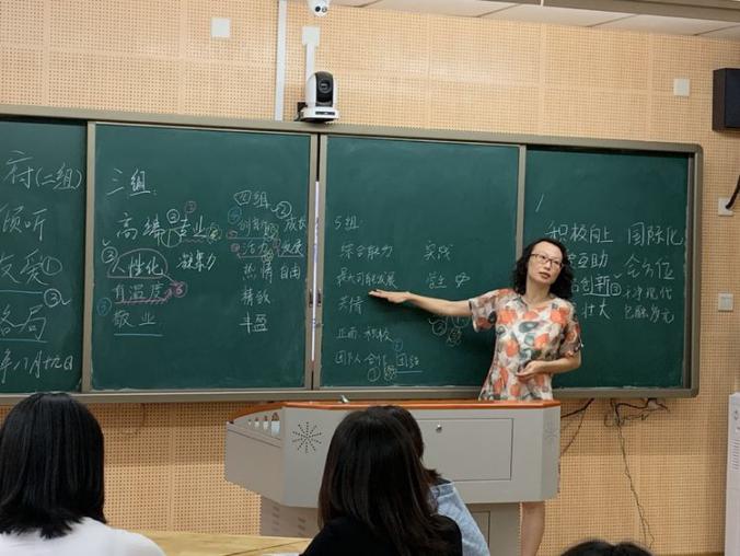 可是,宋茜校长并没有一张PPT,也没有视频,而是请每位新教师写下对学校的初印象,并派代表分组陈述了各自的理由。这样的分享方式彻底颠覆了传统意义上的告知式的培训。