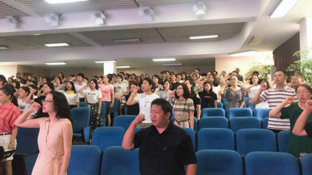 最后,由周强主任带领全体老师进行泡小教师宣言的宣誓。