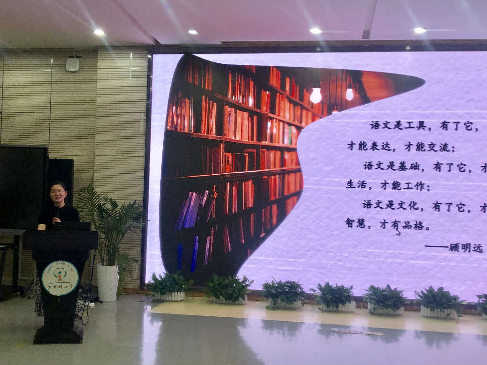 培训在多功能厅开展,全校语文老师参会。会上,杨丽老师分五部分深度剖析了统编教材。