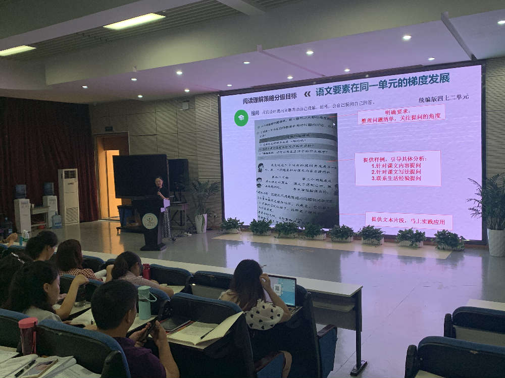 2019年 8月30日上午,成都市高新区教育发展中心教研员杨丽老师莅临我校,进行了一次关于解读统编教材的培训会。