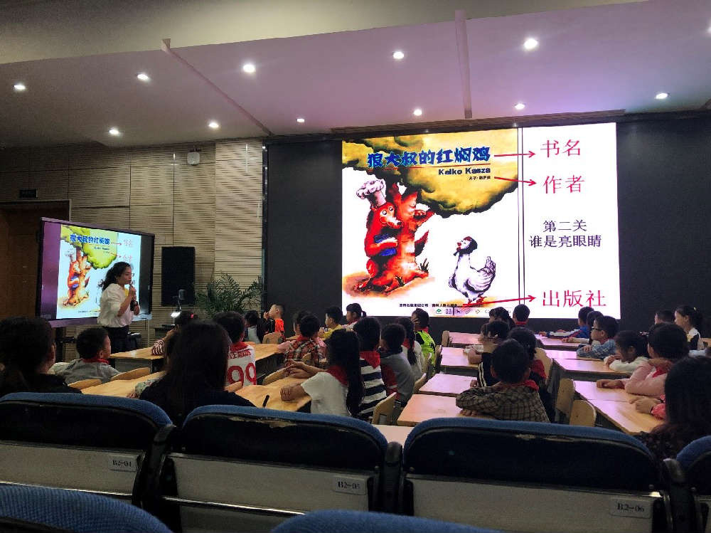 第二节课由二年级的谢静老师带来的《狼大叔的红焖鸡》。谢老师巧妙地运了闯关游戏,引入整本书阅读,整个教学过程中,谢老师以“问题”为主线,以“细节”为关键,留给学生思考的时间,让学生充分学习。