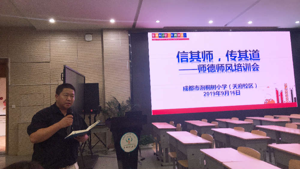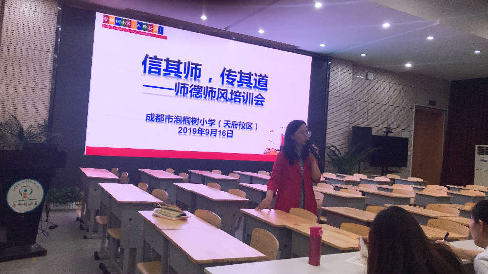 正确地引导、沟通、协调、配合,学校、家庭目标一致,两种教育力量拧成一股绳,必能提高教育的效果。成都市泡桐树小学(天府校区)于2019年9月16日下午在多功能厅召开了以“信其师,传其道”为主题,讨论如何开好家长会的师德师风培训会。首先,教师发展中心廖敏主任以《家长会开出自身的气质》为题进行分享交流,廖主任指出深入了解学生的年龄特点,根据心理特点渗透家庭教育理念,给予相应的指导策略,帮助一个家庭的成长,就是帮助一个孩子的成长。家长会上要做好期初规划、期中反思、期末总结、假期指导。家长会只是形成学校、家庭教育合力的一种途径,家长会到底怎样开,具体的模式没有定论。总之,有利于老师与家长、学生的相互交流与协作,有利于孩子们身心健康发展,有利于学校、班级工作的开展。紧接,陈冠夫副校长就午餐调整、课后服务与大家进行了简短交流,希望大家借家长会与家长做好有效沟通交流。最后,宋茜校长强调午餐管理,希望大家引导孩子们吃饱吃好不浪费,提升公民素养;强调国际理解教育,希望大家努力做一名学习型老师,不断成长。