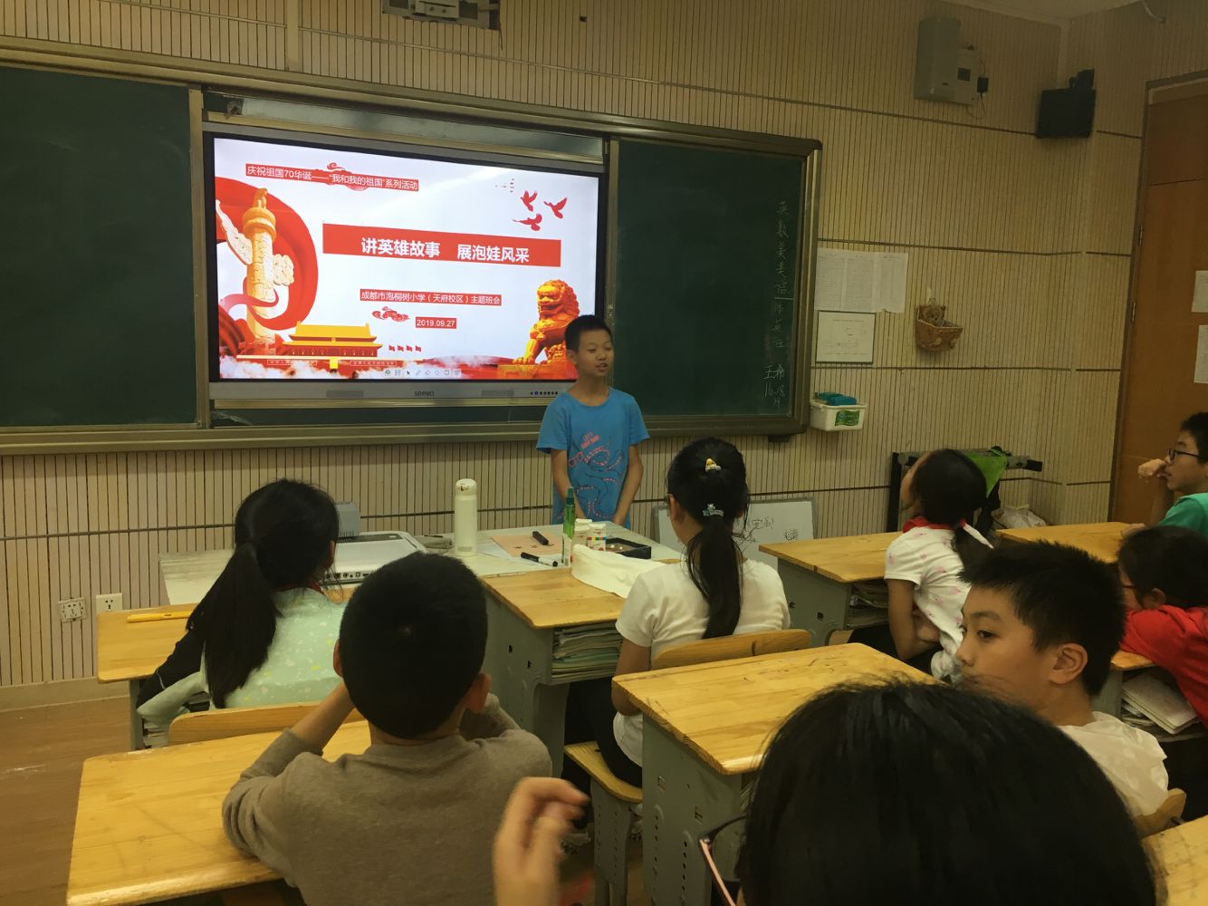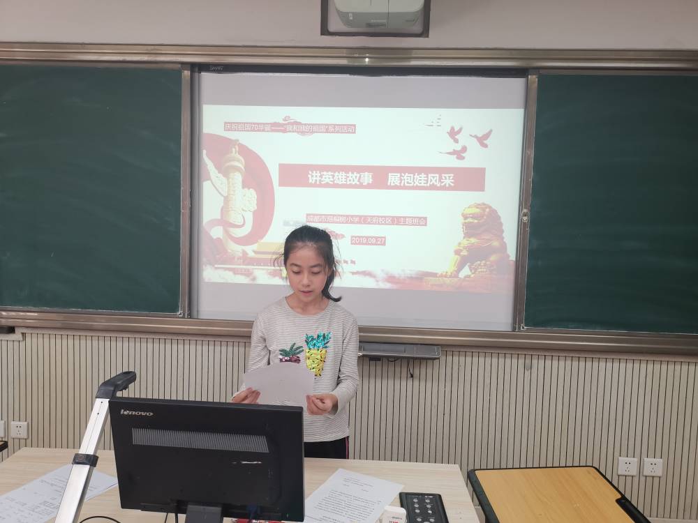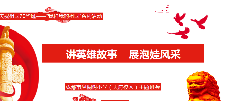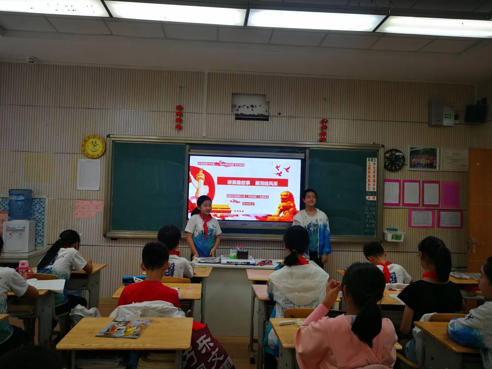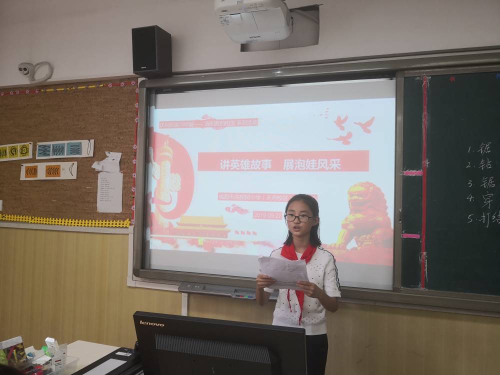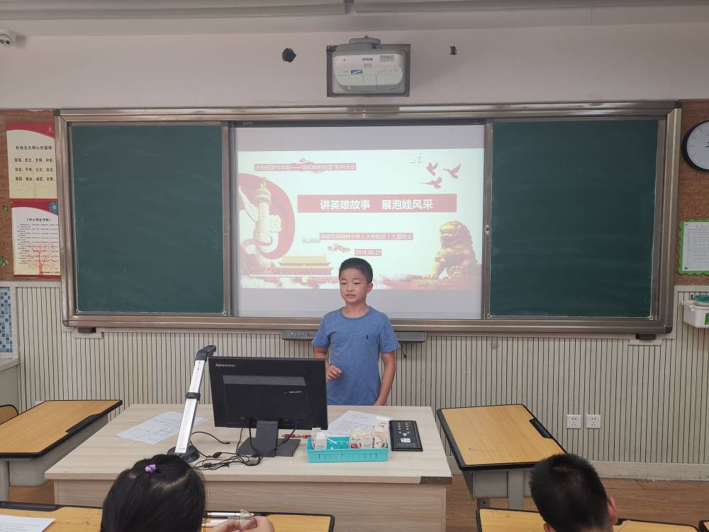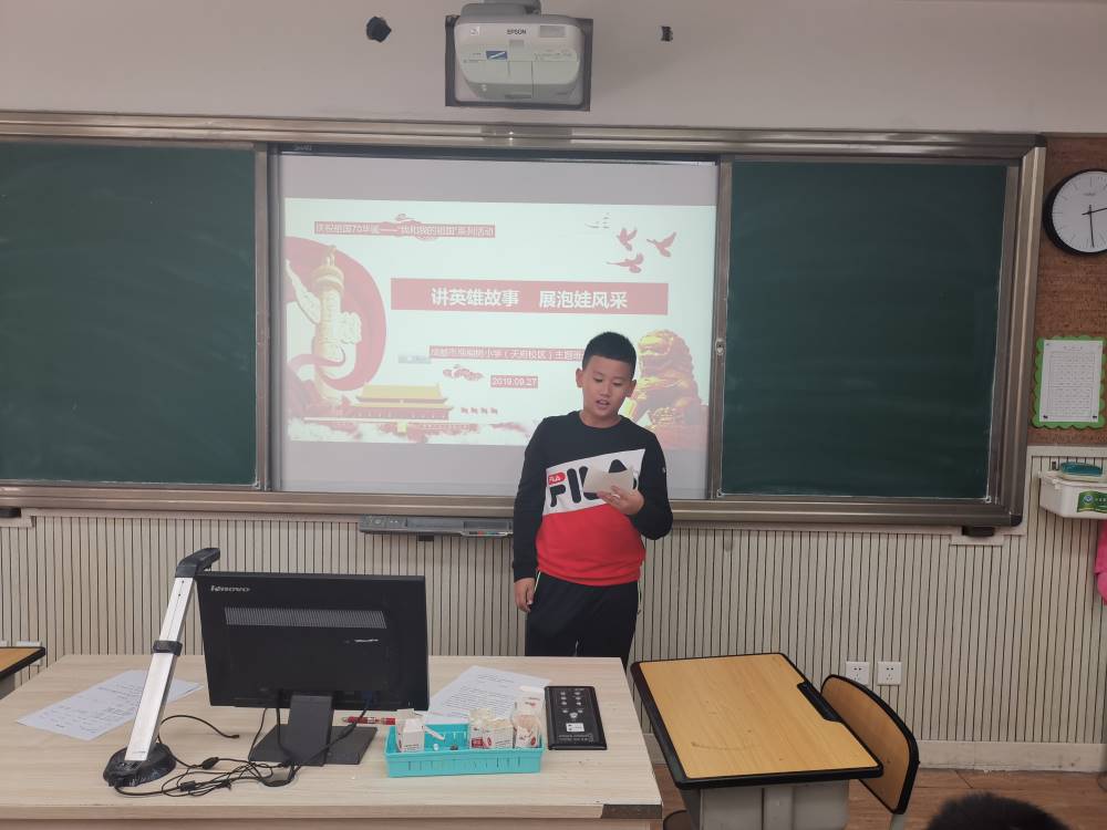 今年,是伟大祖国70周岁的华诞,火红的十月,六年级全体少先队员,开展了“讲英雄故事,展泡娃风采”的系列活动。从九月开始,孩子们就在老师的带领下,通过观看影片,讲述故事,撰写感受,进行演讲等方式,进行了了解英雄、走近英雄、讲述英雄的系列活动。